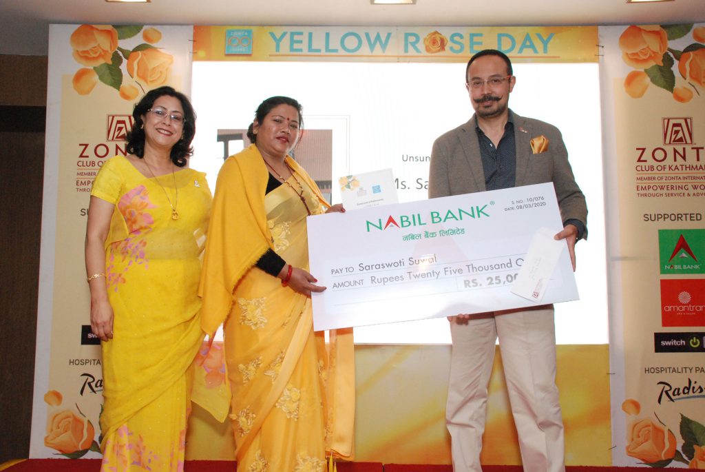 अन्तर्राष्ट्रिय महिला दिवसको अवसरमा जोन्टा क्लब अफ काठमाडौंले ८ मार्च, २०२० अर्थात फागुन २५ गते “प्रेरणादायक र साहसी महिला” लाई विभिन्न परिस्थितिका बाबजुत उनीहरुको योगदान र उपलब्धीलाई सम्मान गर्र्न आफ्नो वार्षिक कार्यक्रम “येलो रोज डे” मनाएको छ । उक्त अवार्ड समारोह नबिल बैंक, आमन्त्रन स्पा एण्ड सलुन र मल्टी ब्राण्ड इलेक्ट्रोनिक स्टोर स्वीच अनको सहयोगमा ¥याडिसन होटलले आयोजित गरेको थियो ।