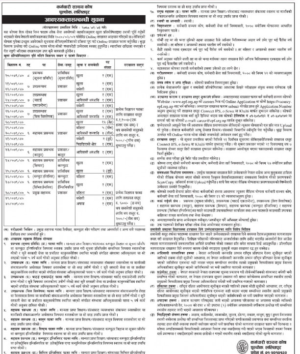 आठौँ देखि पाँचौँ तहसम्म रिक्त पदका लागि दरखास्त आह्वान गरेको हो । सूचना प्रकाशित भएको २१ दिनभित्र आवेदन दिन कोषले आग्रह गरेको छ । दोब्बर दस्तुर तिरेर थप ७ दिनसम्म आवेदन दिन सकिने सूचनामा उल्लेख छ ।