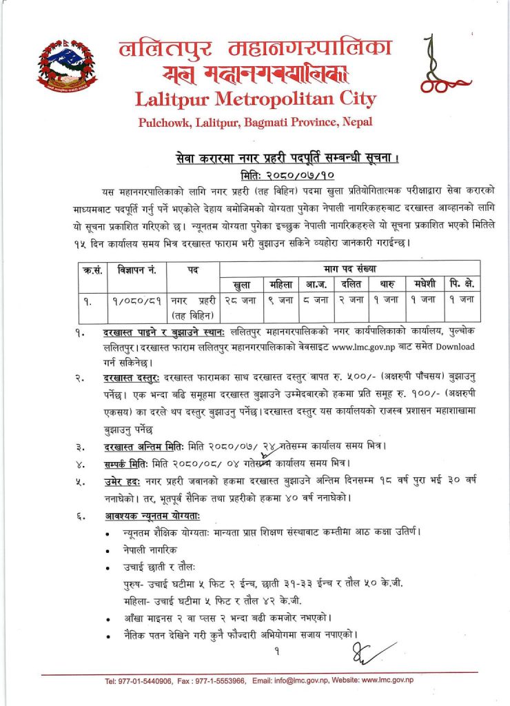 • ललितपुर महानगरले नगर प्रहरीमा भर्ना खोल्यो