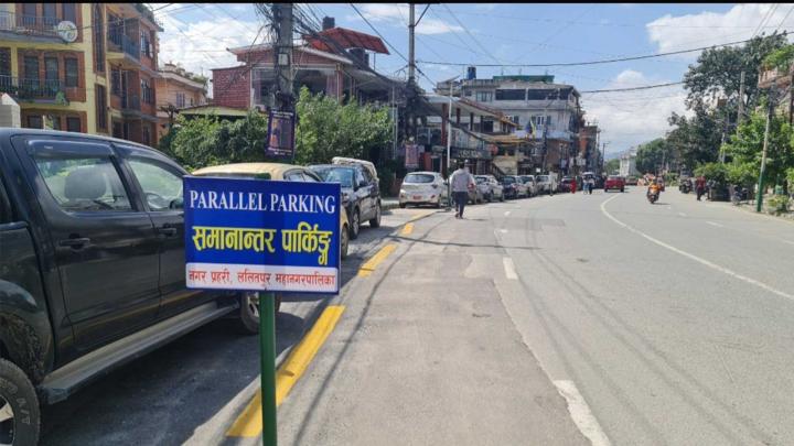 ट्राफिक व्यवस्थापनलाई प्रभावकारी बनाउन ललितपुर महानगरपालिकाले चालेको अर्को महत्वपूर्ण कदम हो—पार्किङ व्यवस्थापन । हुन त देशको संघीय राजधानीका दुई महानगरपालिकाको ट्राफिक व्यवस्थापनको शैली भिन्न मात्र होइन, ठ्याक्कै उल्टो छ । काठमाडौँ महानगरले सडक किनारमा सशुल्क वा निःशुल्क दुवै खाले पार्किङलाई निषेध गरेको छ । सार्वजनिक सवारी साधन गुड्ने बाटोमा पार्किङ गर्न नपाइने उसको मान्यता छ । छिमेकी ललितपुर महानगरपालिकाले भने सडकमै निःशुल्क पार्किङको सुविधा दिएको छ । ललितपुर महानगरको मंगलबजार, पाटनढोका गेटअगाडि—पछाडि, नः टोल, टंगाल, हौगल, हःजा, सुन्धारा, पाटनको भीमसेन मन्दिरअगाडि, पुल्चोक दमकलअगाडि, जावलाखेल प्रहरी कार्यालय अगाडि, महानगरपालिका भवन अगाडि, भनिमण्डल, एकान्तकुना खरीबोट लगायतका क्षेत्रमा निःशुल्क पार्किङस्थल तोकेको छ ।
