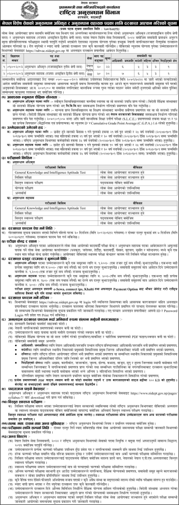 राष्ट्रिय अनुसन्धान विभागले ठूलो सङ्ख्यामा कर्मचारी माग गरेको छ ।