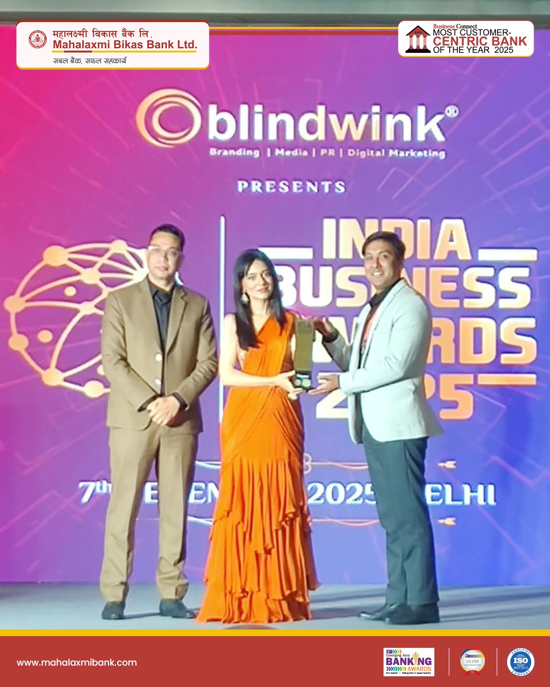 महालक्ष्मी विकास बैंक अर्न्तराष्ट्रिय अवार्डबाट सम्मानित