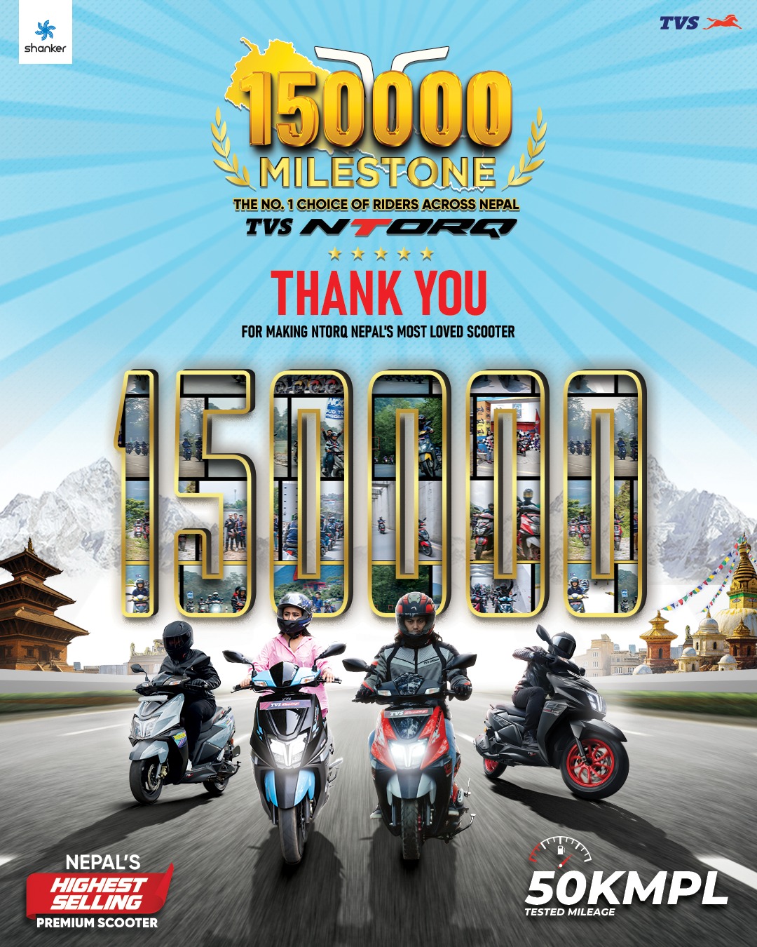 TVS NTORQ 125 ले नेपालमा १.५ लाख प्रयोगकर्ता पार गर्यो