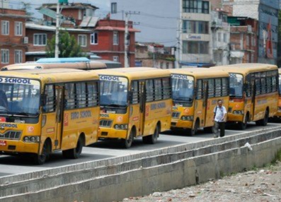 शिक्षा विधेयकको विरोधमा निजी स्कुलका बसको र्याली
