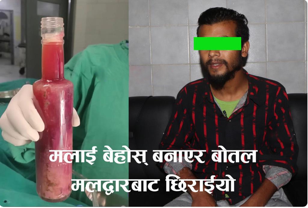 पेटभित्र रक्सीको बोतल भेटिएका युवक अस्पतालबाट डिस्चार्ज
